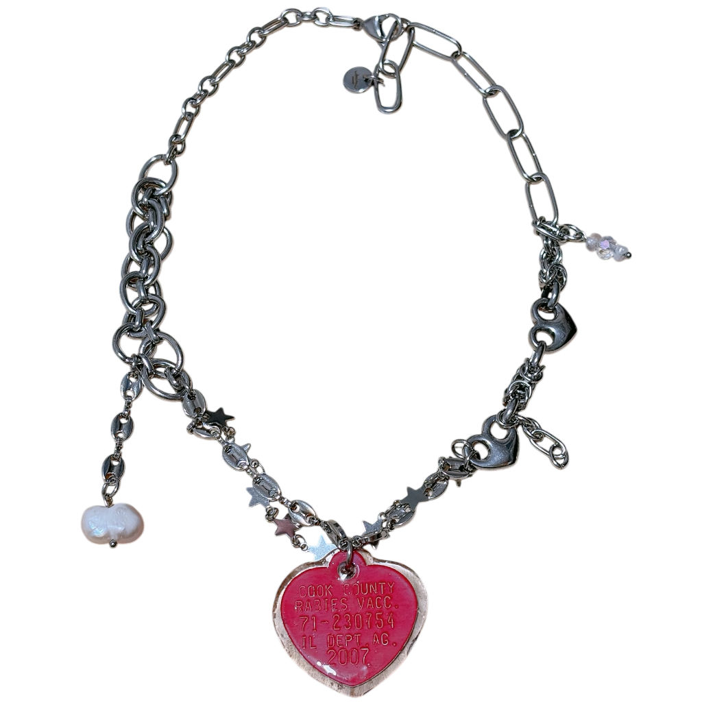 This is an original mimi miroir necklace made with a luxuriously used one-of-a-kind dog tag.